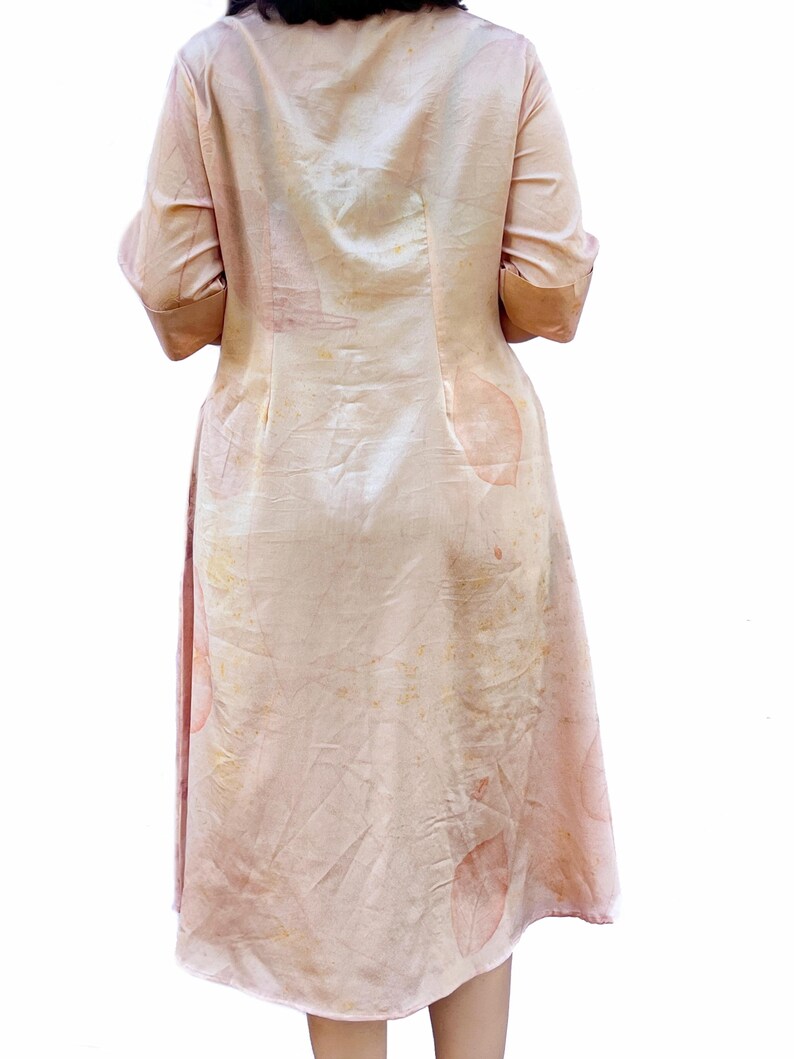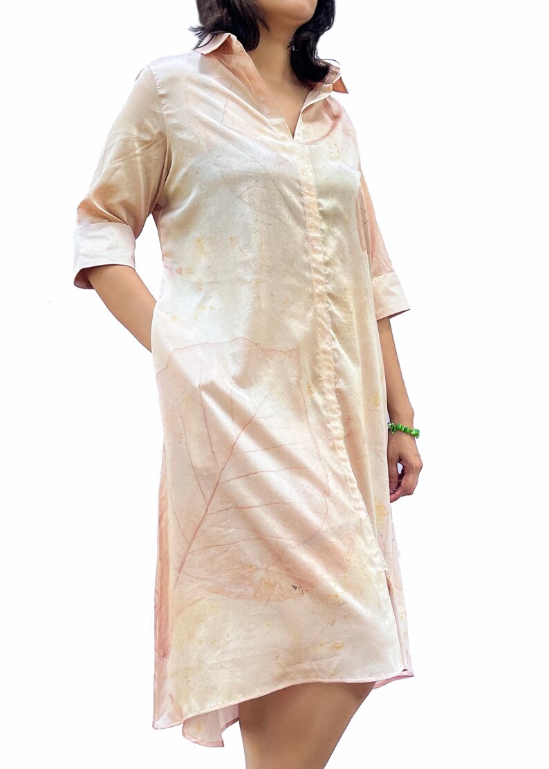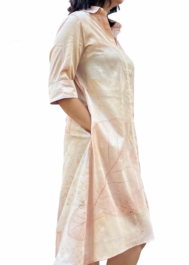 Botanical Leaf Eco Print Midi Shirt Dress | Peach Natural Dye Tunic Summer Clothing