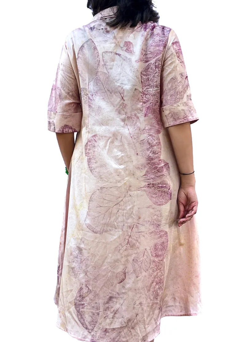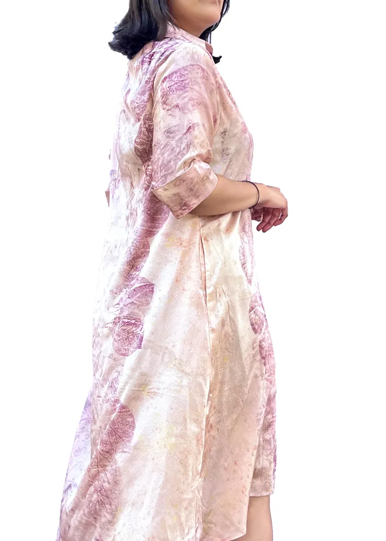 Ecoprint Midi Shirt Dress | Botanical Pink Purple Tie Dye Bohemian Resort Wear